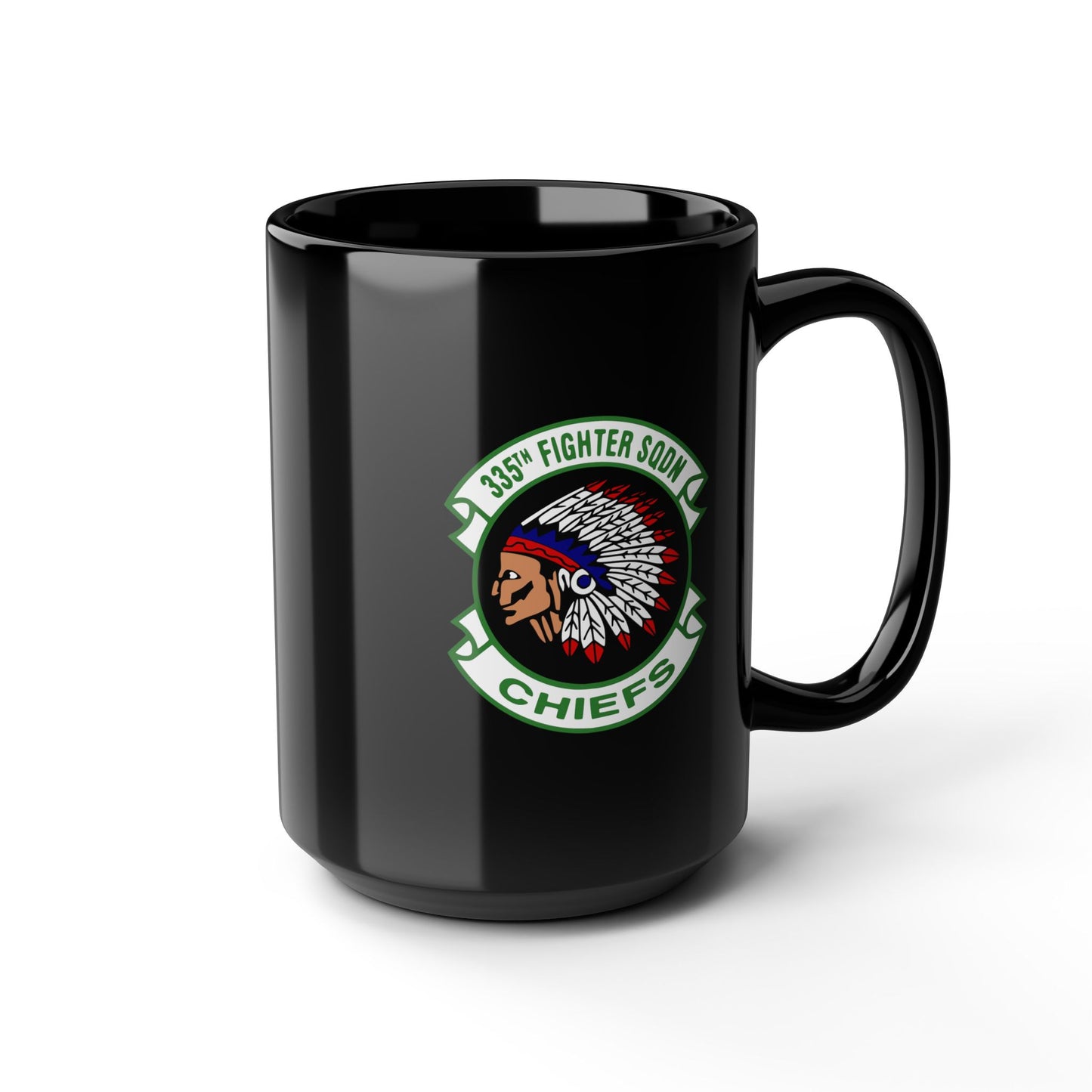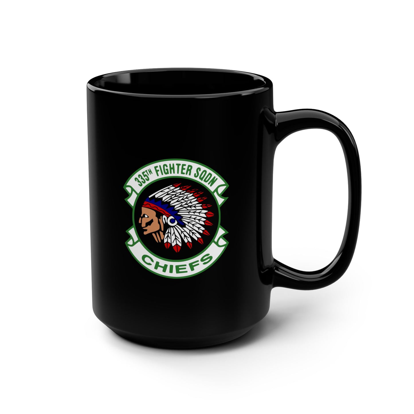 Free shipping on all mugs! 333rd Fighter Squadron patch on one side, F-15E front silhouette on the other. These black mugs come in one size – 15oz (0.44l) – plenty for morning caffeine boosts and hot cups of tea on a rainy day. They're easy to grip and feel sturdy thanks to the C-shaped handle. Add more personality by decorating them with your original designs. They'll be printed on the black ceramic material in picture-perfect quality with a glossy finish.