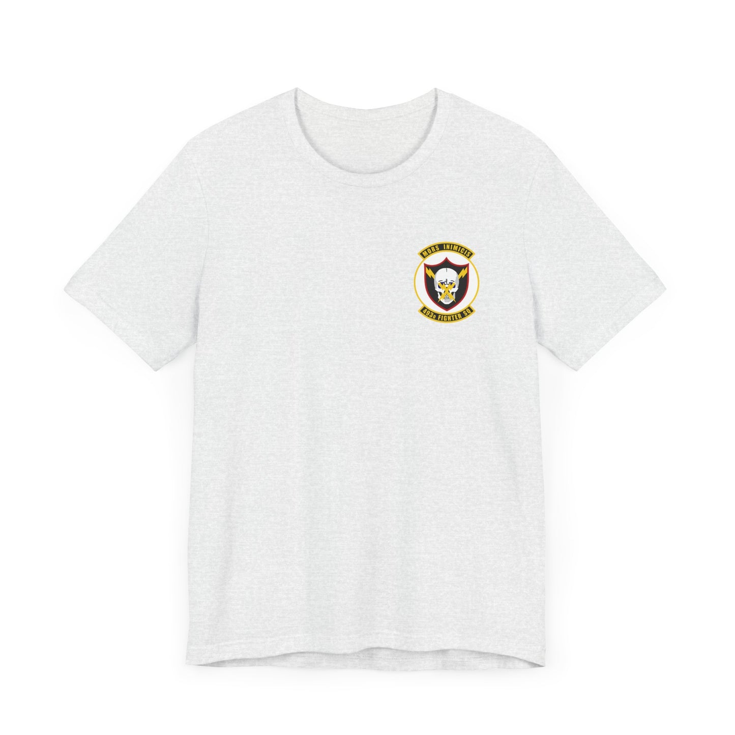 This classic unisex jersey short sleeve tee fits like a well-loved favorite. Soft cotton and quality print make users fall in love with it over and over again. These t-shirts have-ribbed knit collars to bolster shaping. The shoulders have taping for better fit over time. Dual side seams hold the garment's shape for longer. 493FS Patch on front.