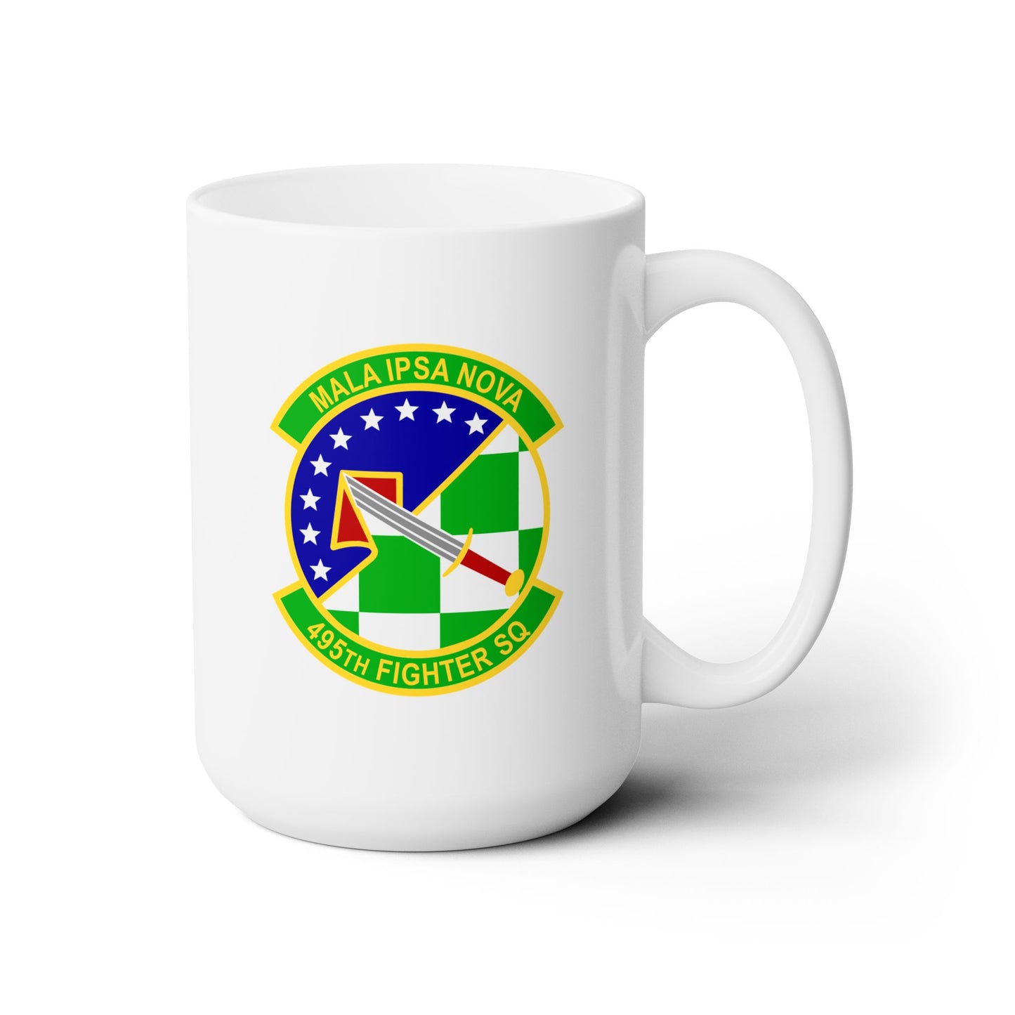 Free shipping on all mugs! F-35A front silhouette on one side, 495th Fighter Squadron "Valkyries" patch on the other. It’s microwave-safe, and can be washed in dishwasher or easily cleaned with a mild detergent.