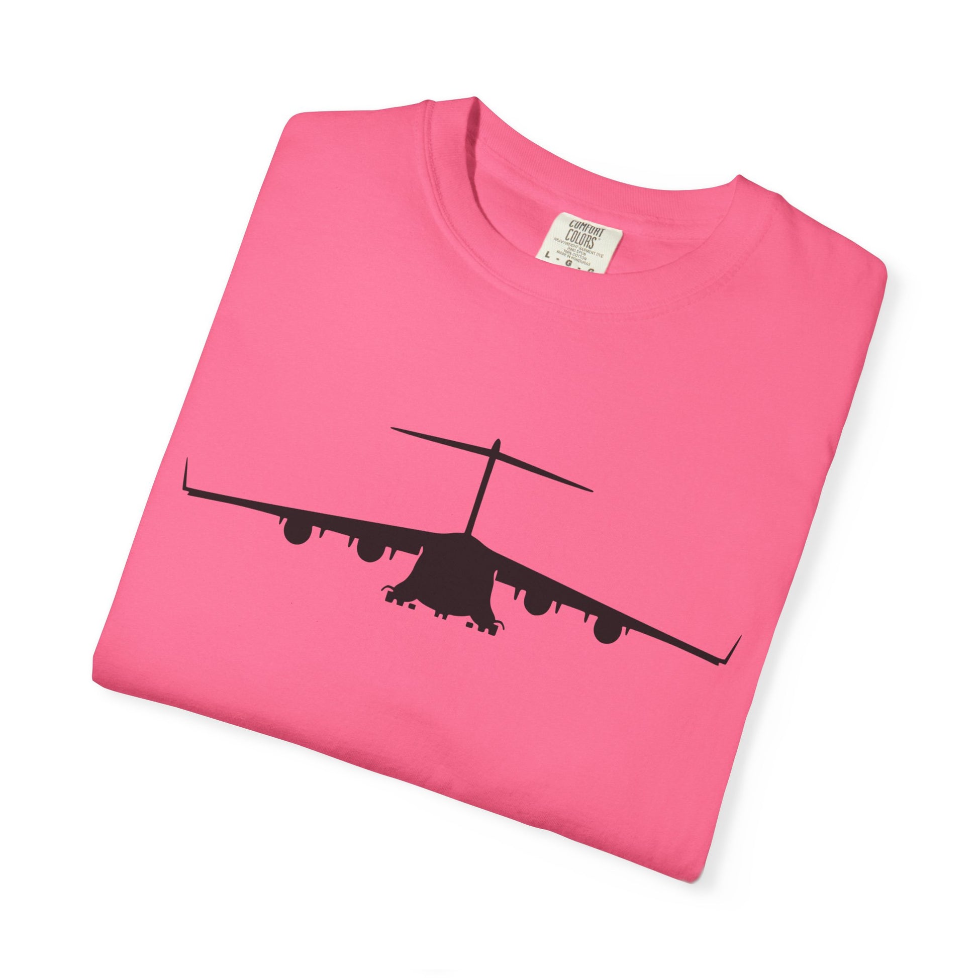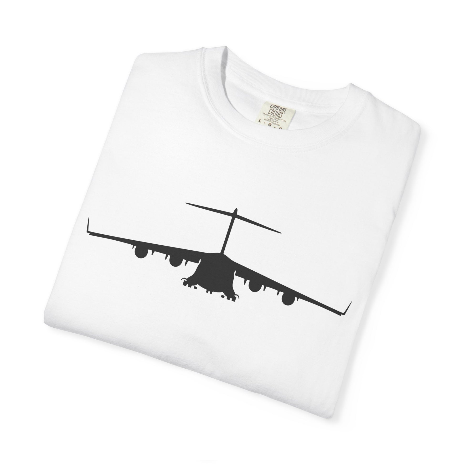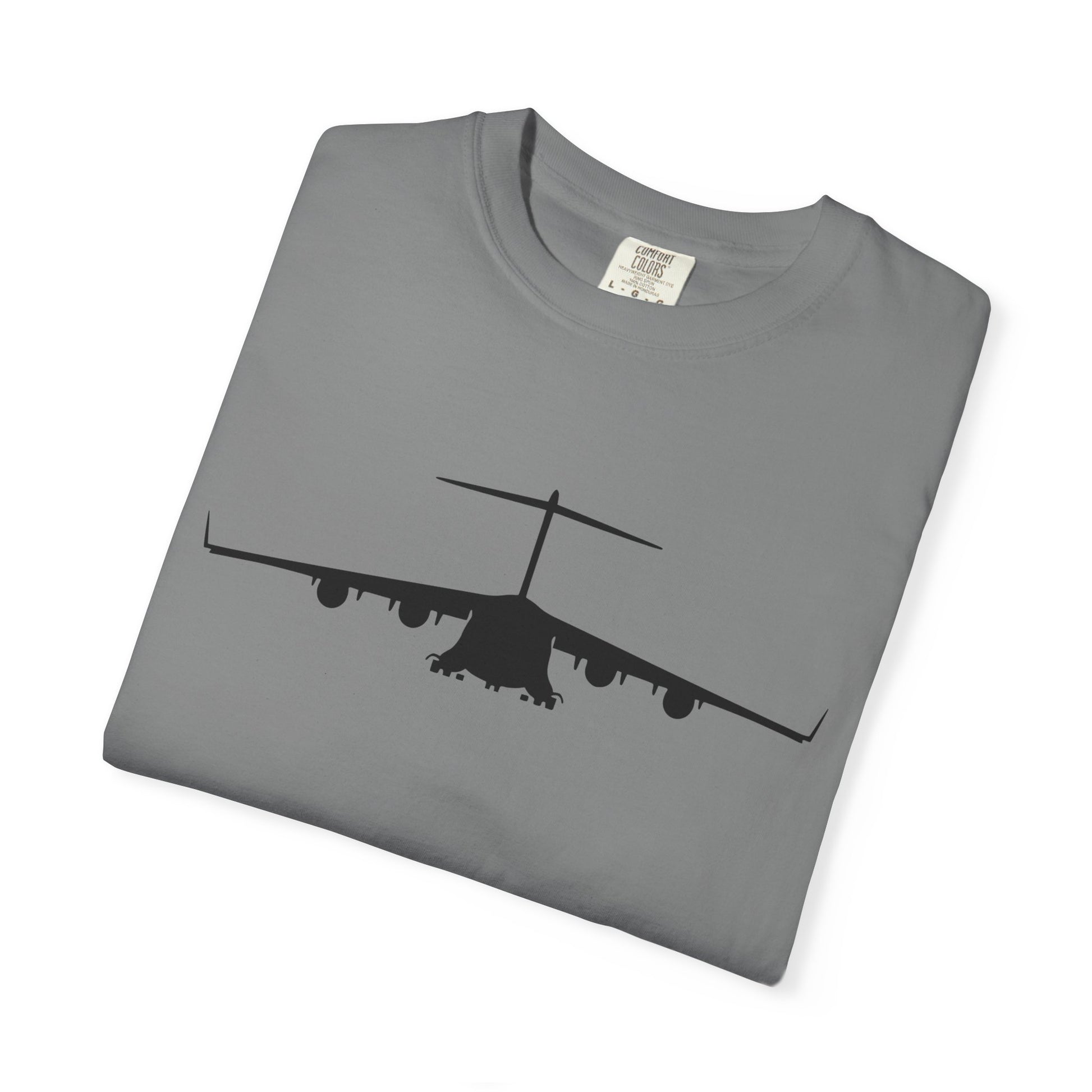 C-17 Front Silhouette Comfort Colors Unisex T-Shirt with Airplane Design, Casual Wear, Gift for Pilots, Aviation Lovers, Travel Enthusiasts, Plane Spotting