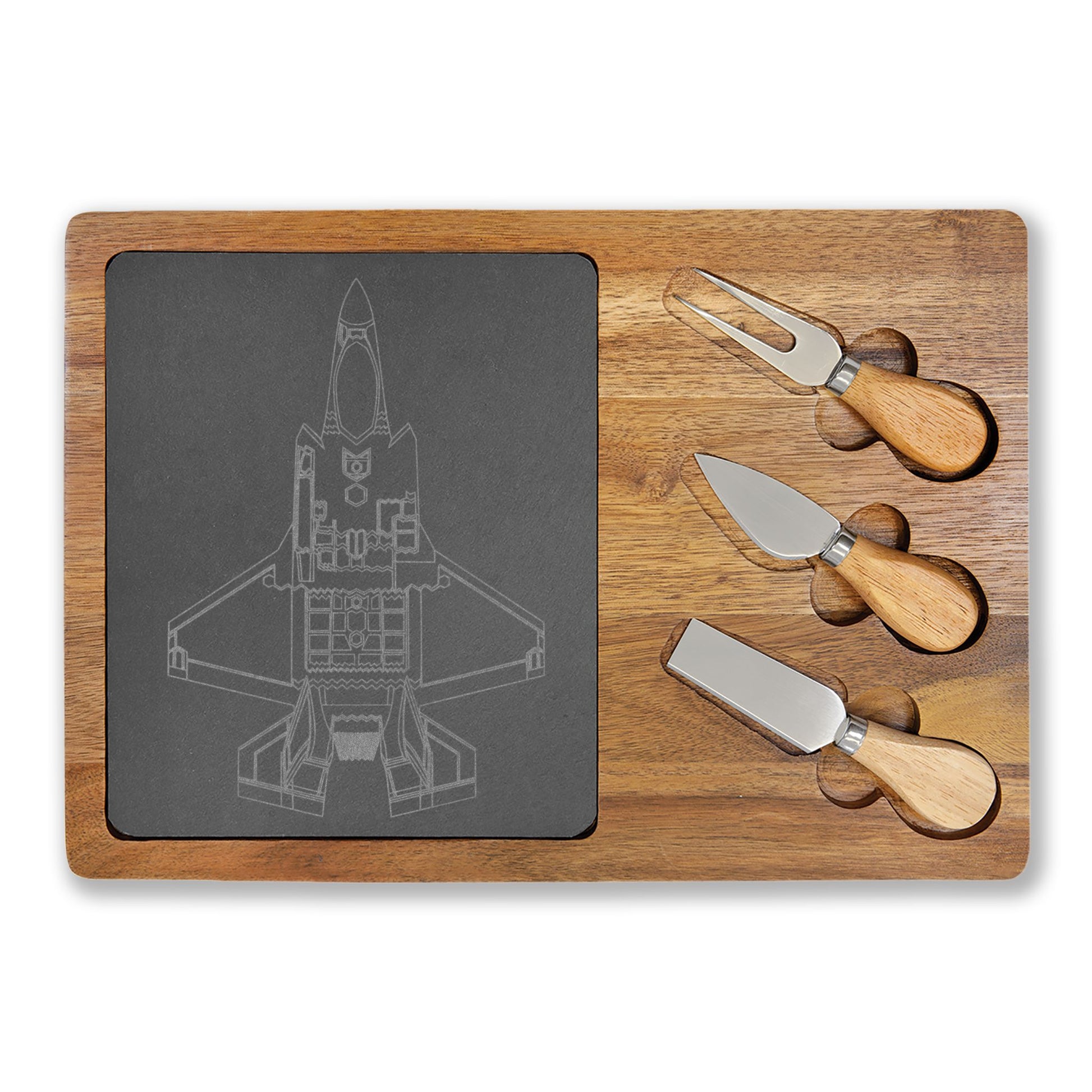 Engraved Charcuterie Board with Slate Inlay & 3-Piece Cheese Knife Set — F-35