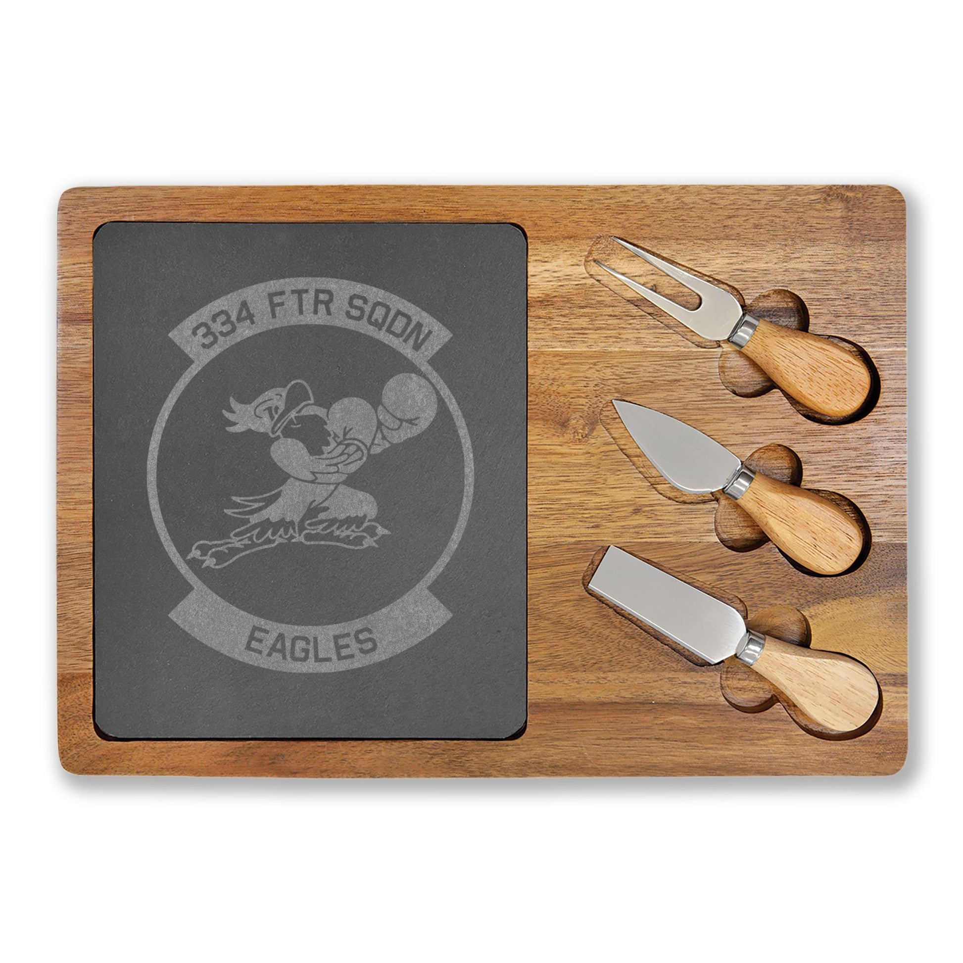 Engraved Charcuterie Board with Slate Inlay & 3-Piece Cheese Knife Set — 334FS Eagles Logo