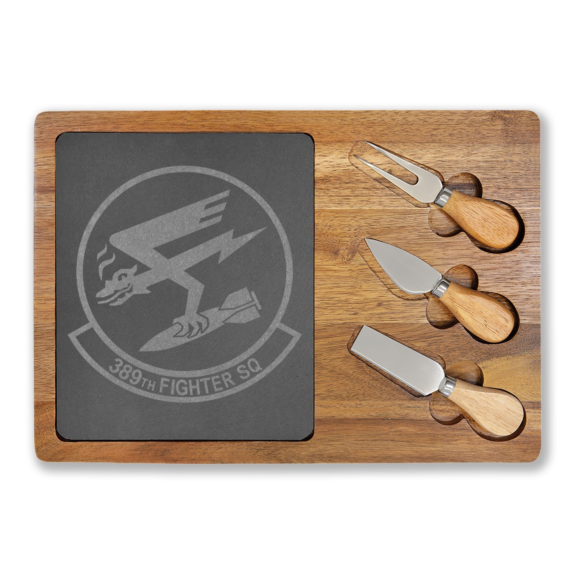 Engraved Charcuterie Board with Slate Inlay & 3-Piece Cheese Knife Set — 389FS T-Bolts Logo
