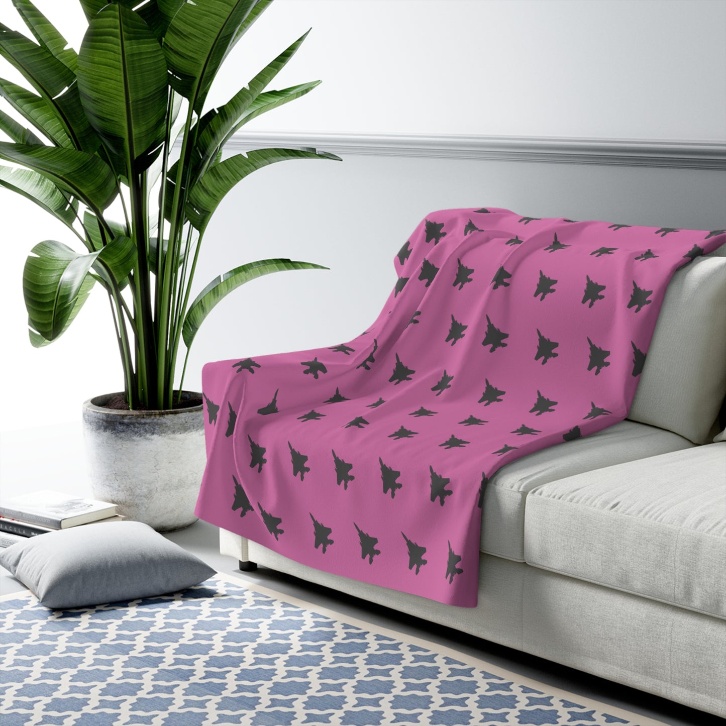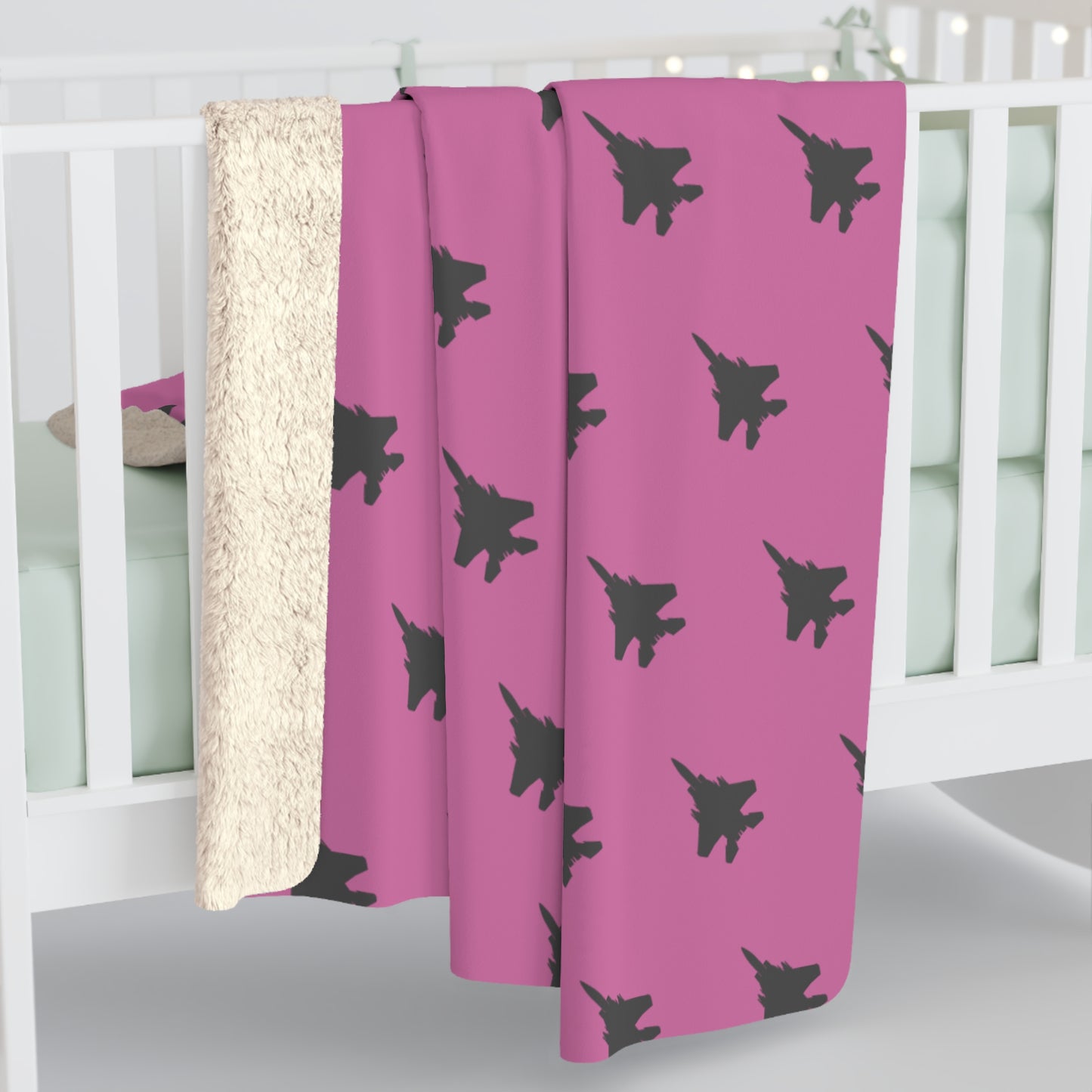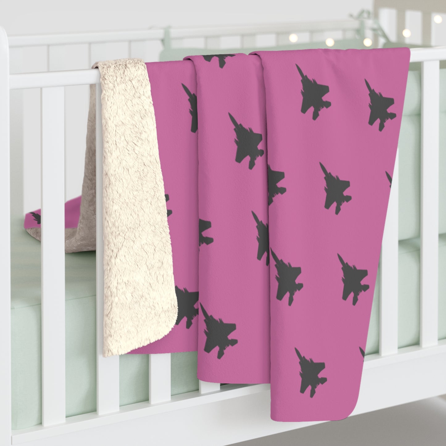F-15E Pattern Sherpa Fleece Blanket, Pink