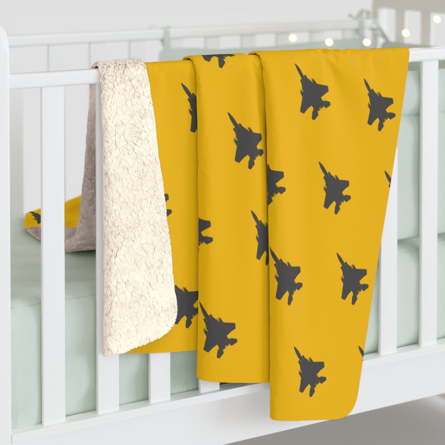 F-15E Pattern Sherpa Fleece Blanket, Yellow