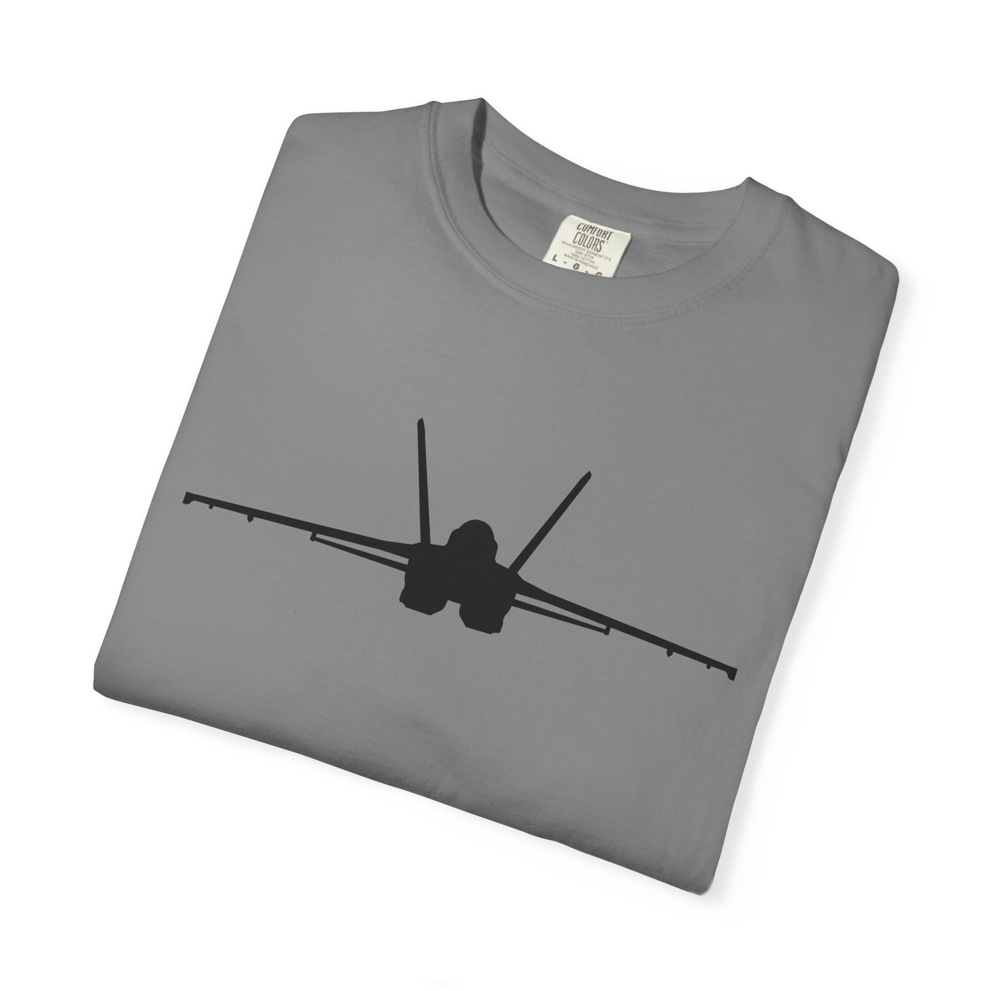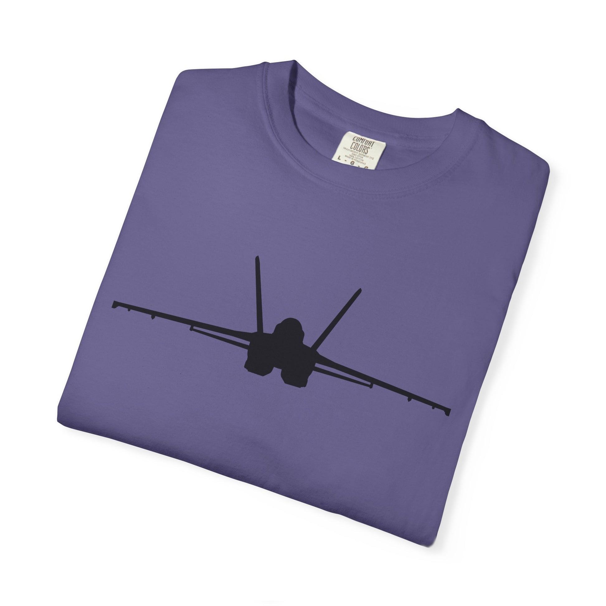 F/A-18 Front Silhouette Comfort Colors Unisex T-Shirt with Airplane Design, Casual Wear, Gift for Pilots, Aviation Lovers, Travel Enthusiasts, Plane Spotting