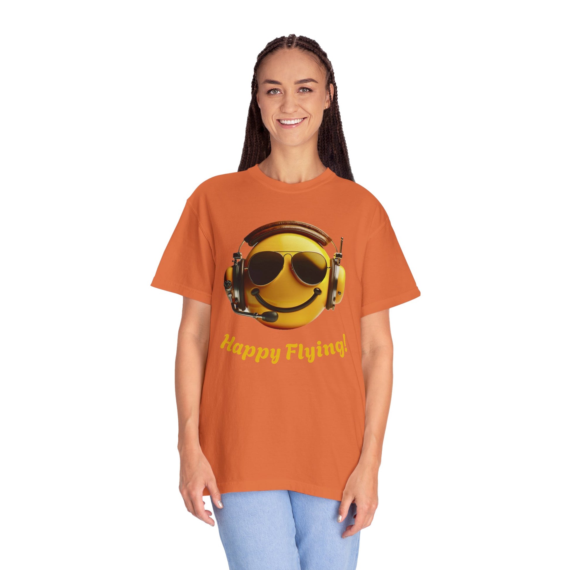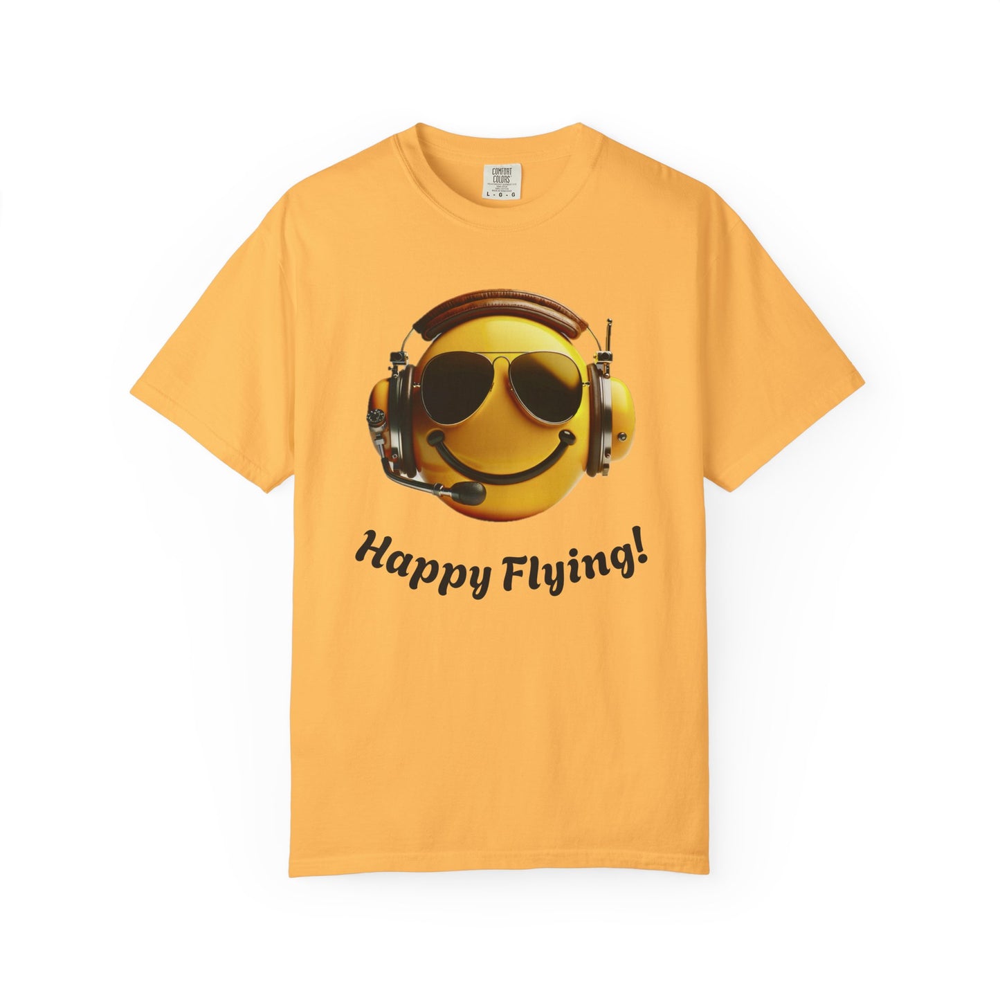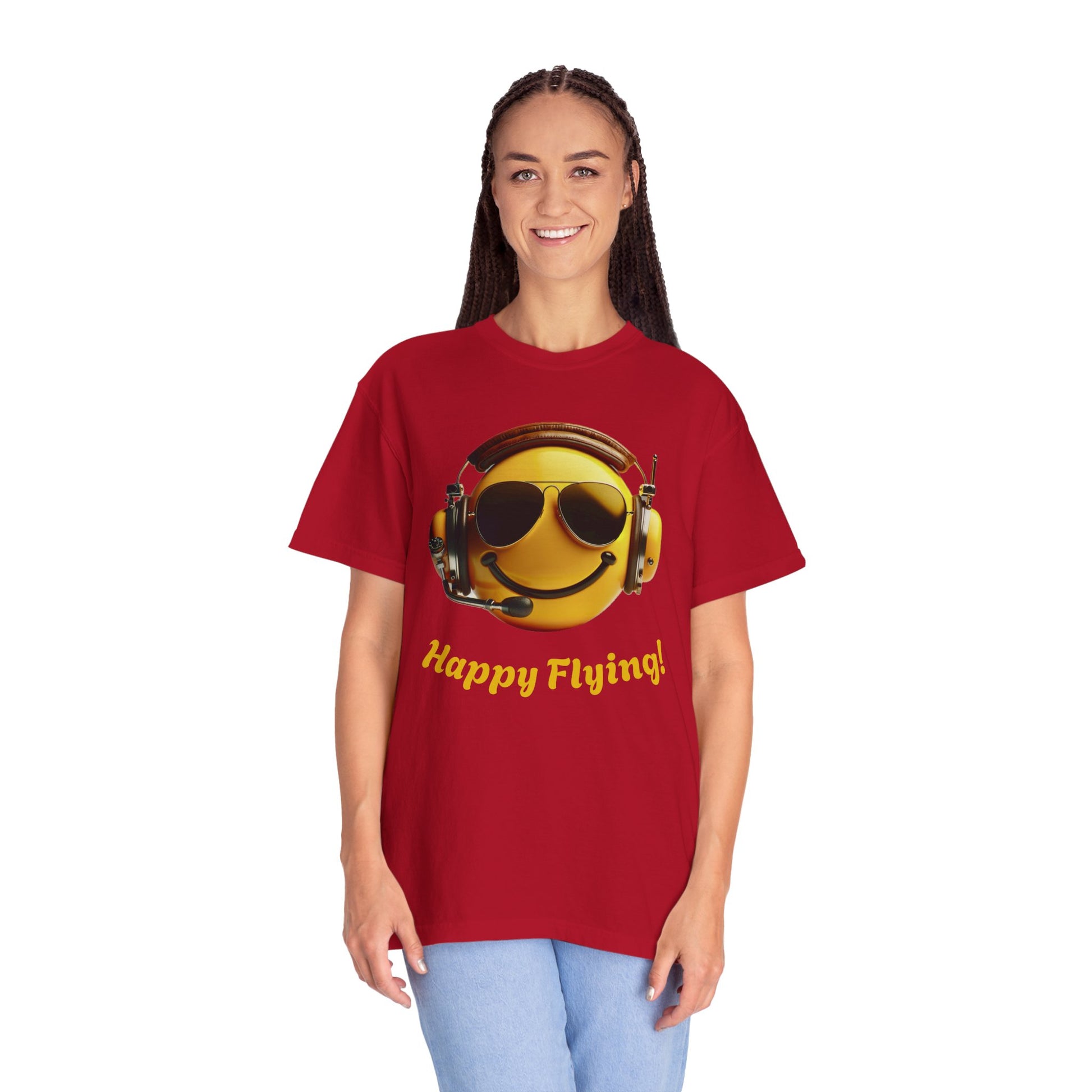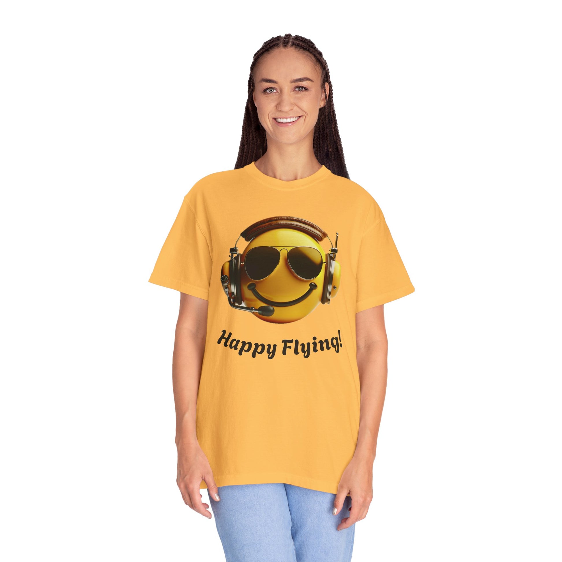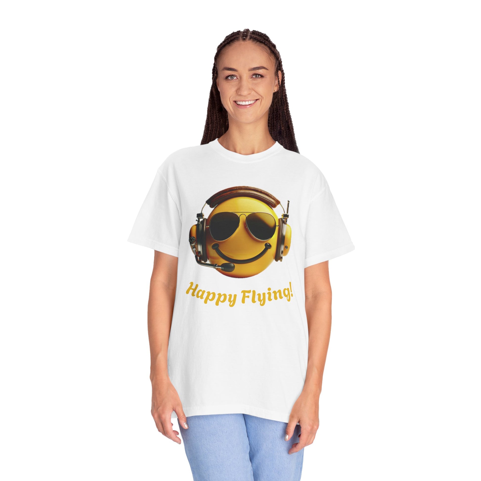 Happy Flying! - Smiley Face Comfort Colors Unisex T-Shirt, Casual Wear, Gift for Pilots, Aviation Lovers, Travel Enthusiasts, Plane Spotting