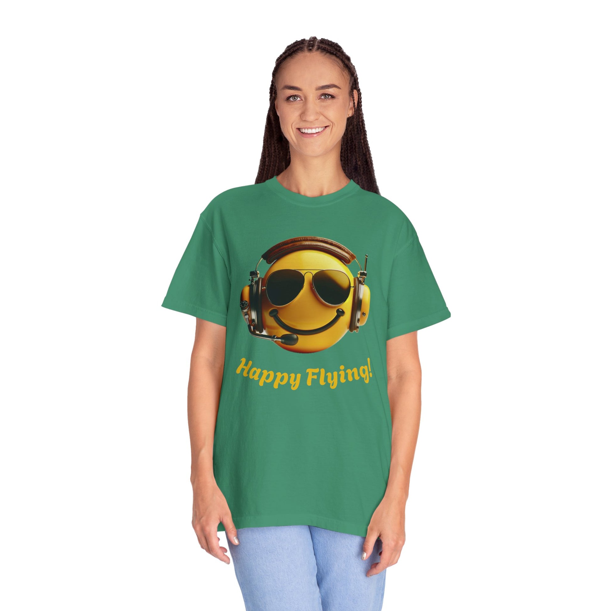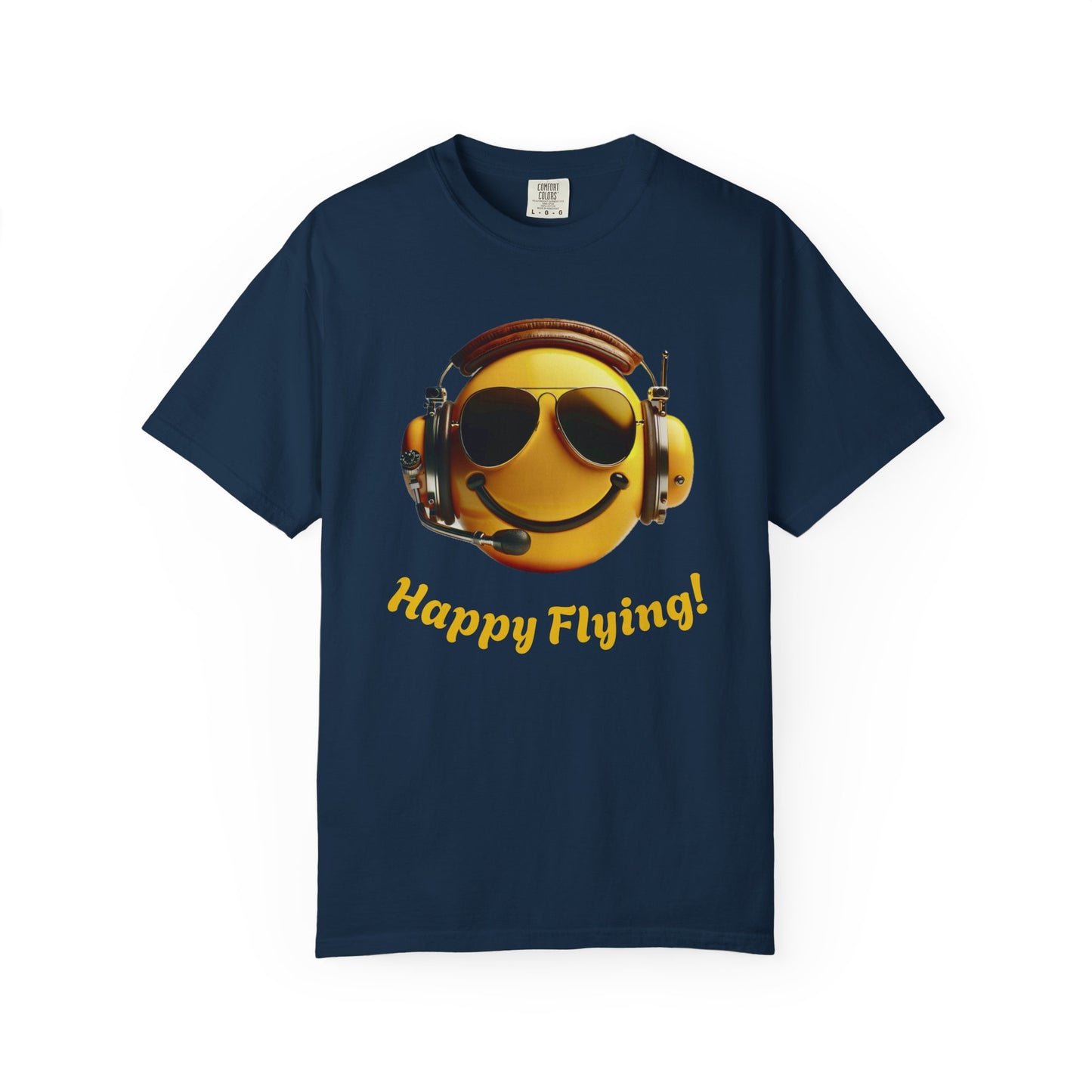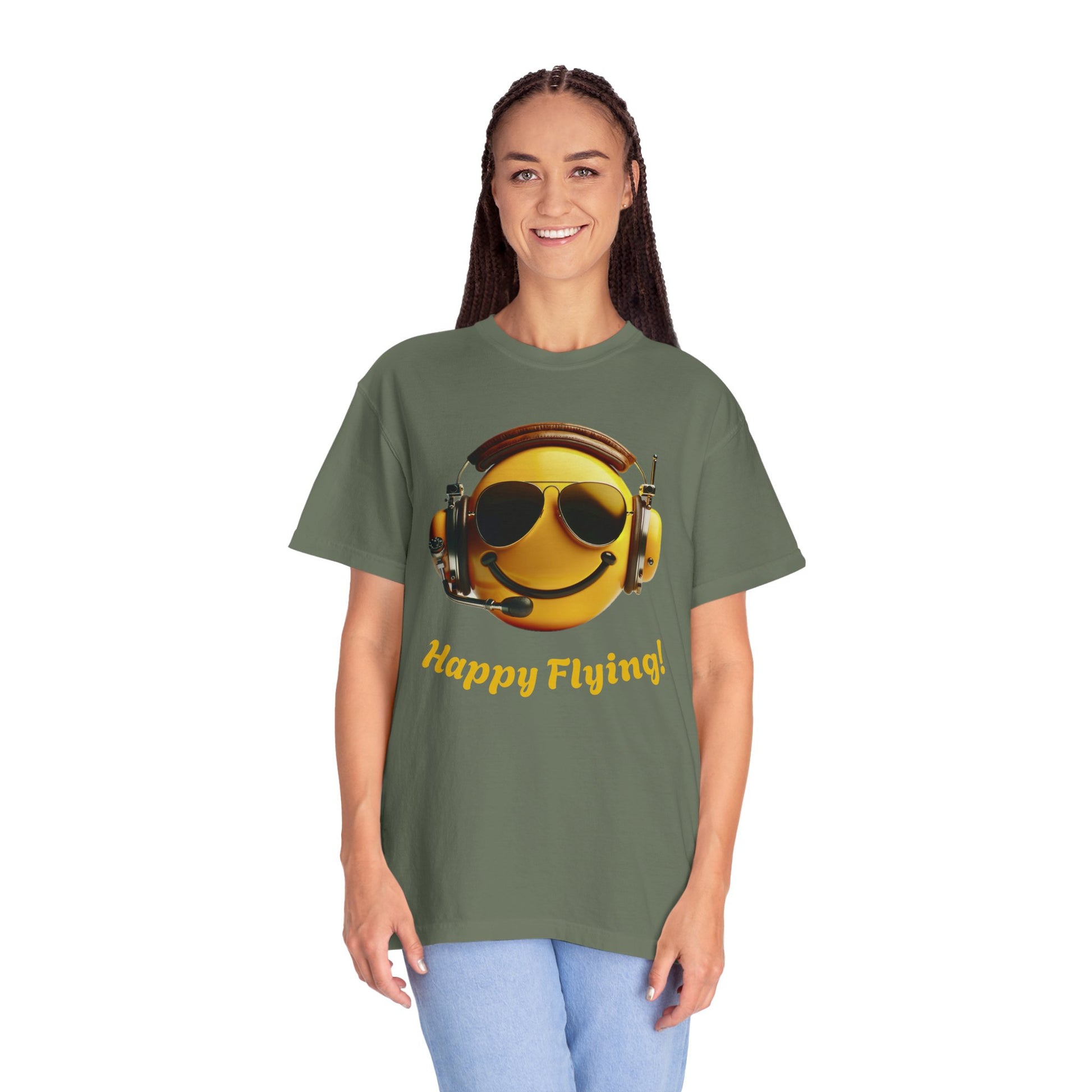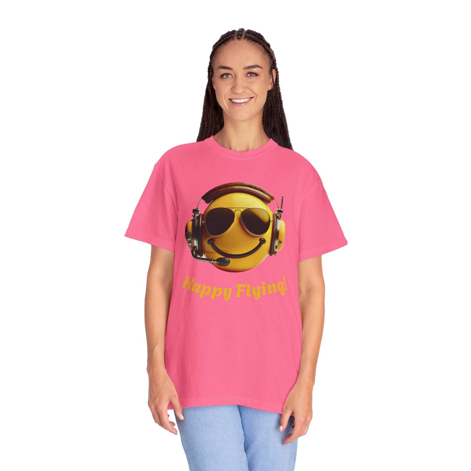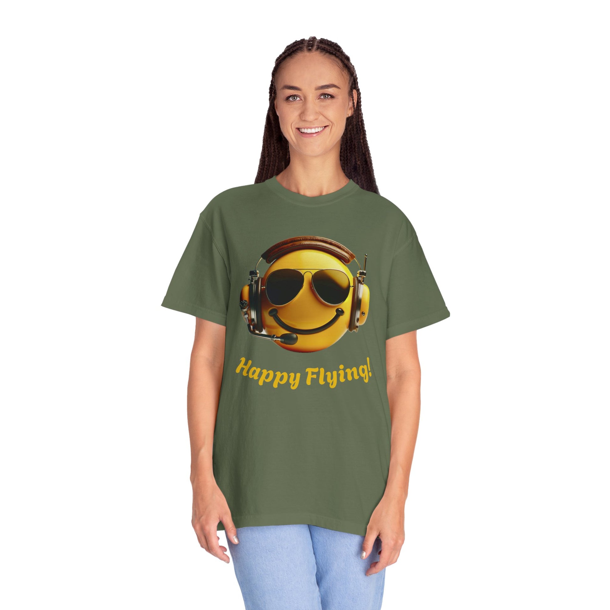 Happy Flying! - Smiley Face Comfort Colors Unisex T-Shirt, Casual Wear, Gift for Pilots, Aviation Lovers, Travel Enthusiasts, Plane Spotting