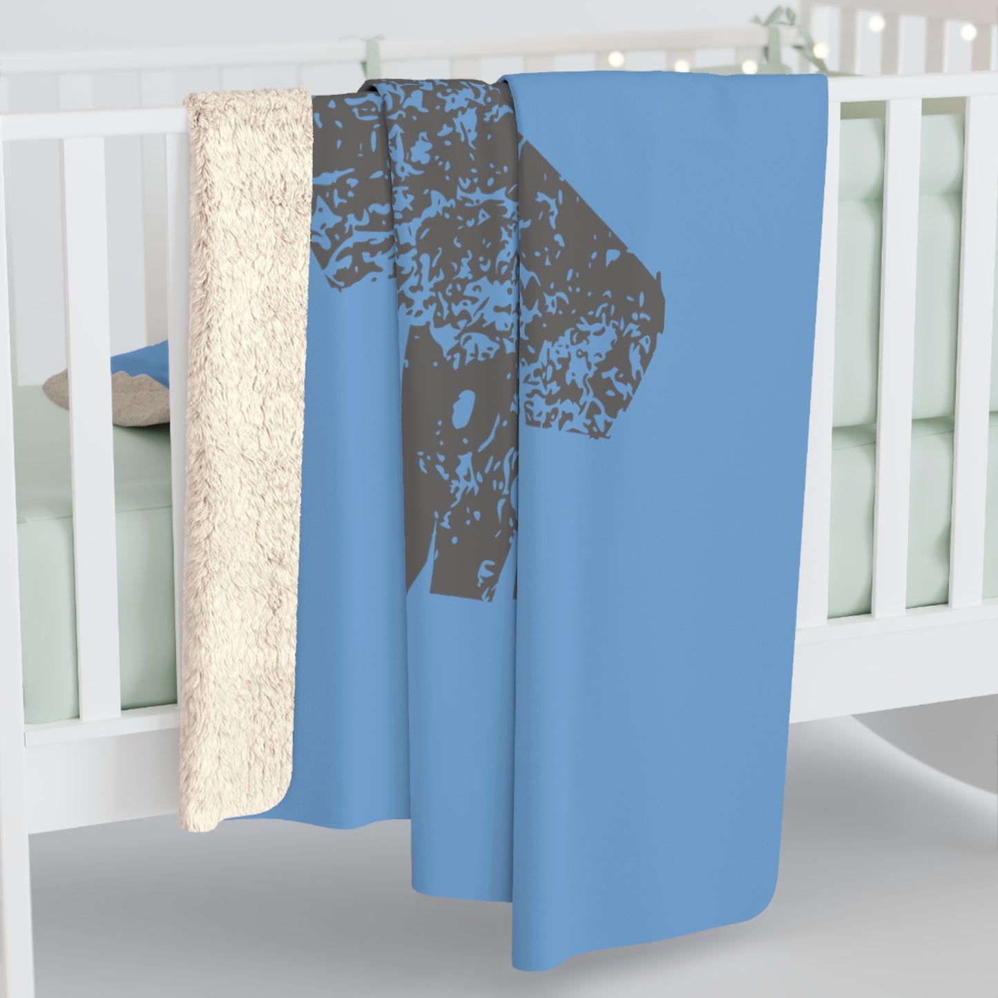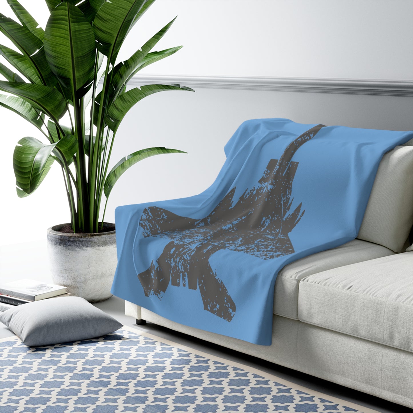 Light Blue Sherpa Blanket with F-15E Silhouette Graphic