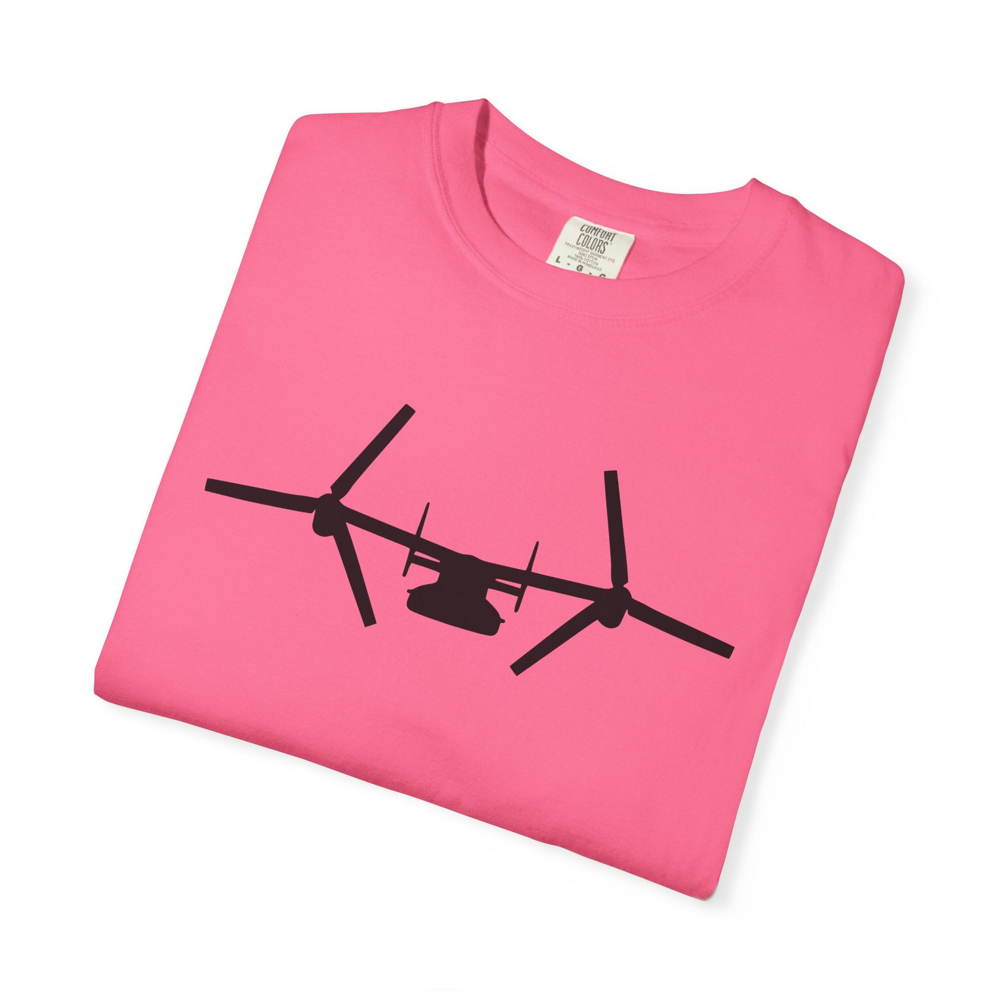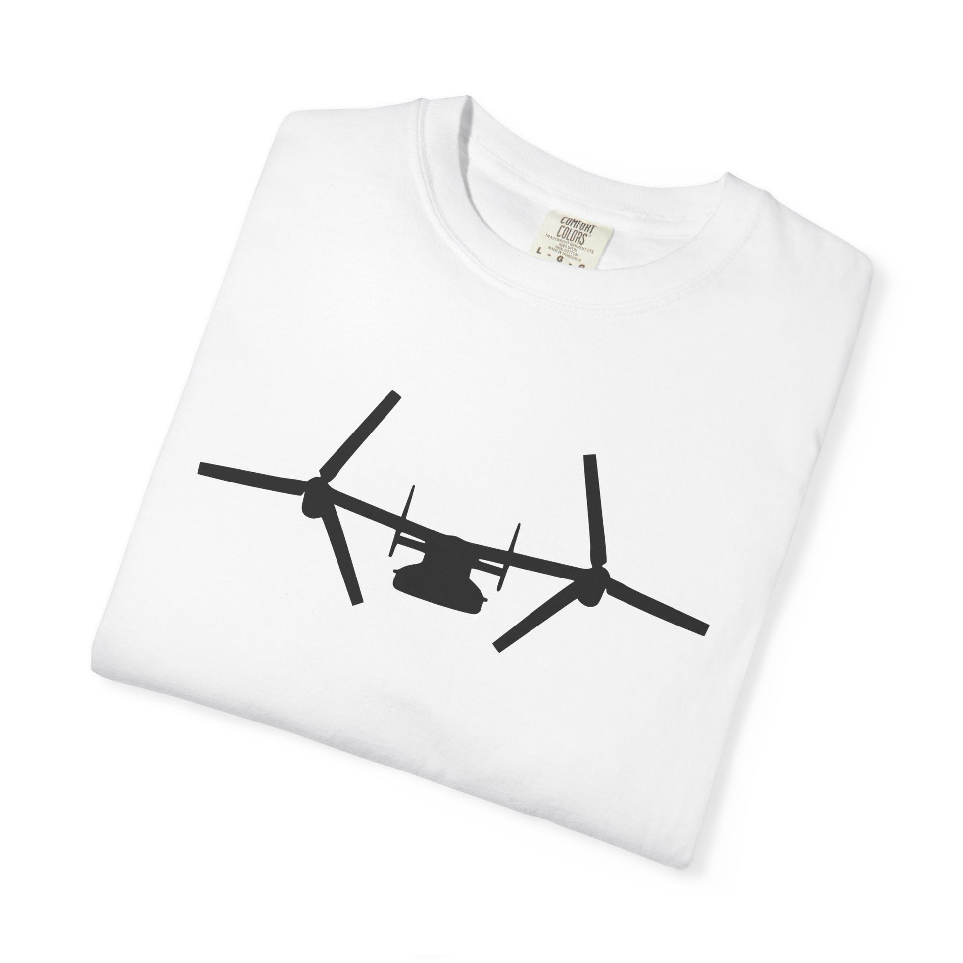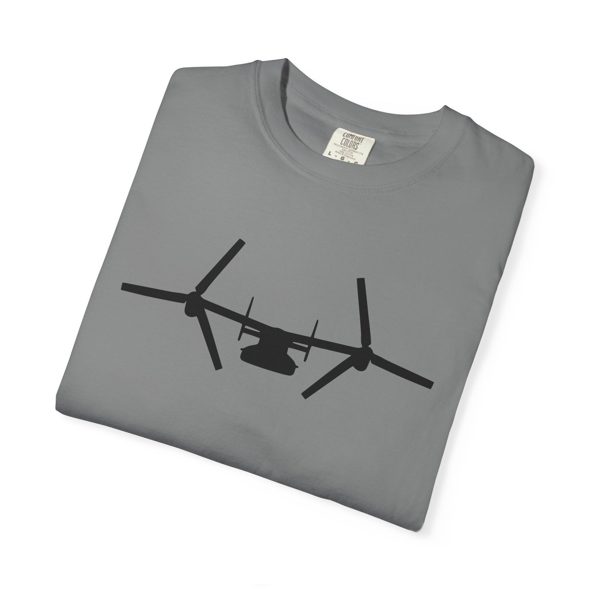V-22 Front Silhouette Comfort Colors Unisex T-Shirt with Airplane Design, Casual Wear, Gift for Pilots, Aviation Lovers, Travel Enthusiasts, Plane Spotting