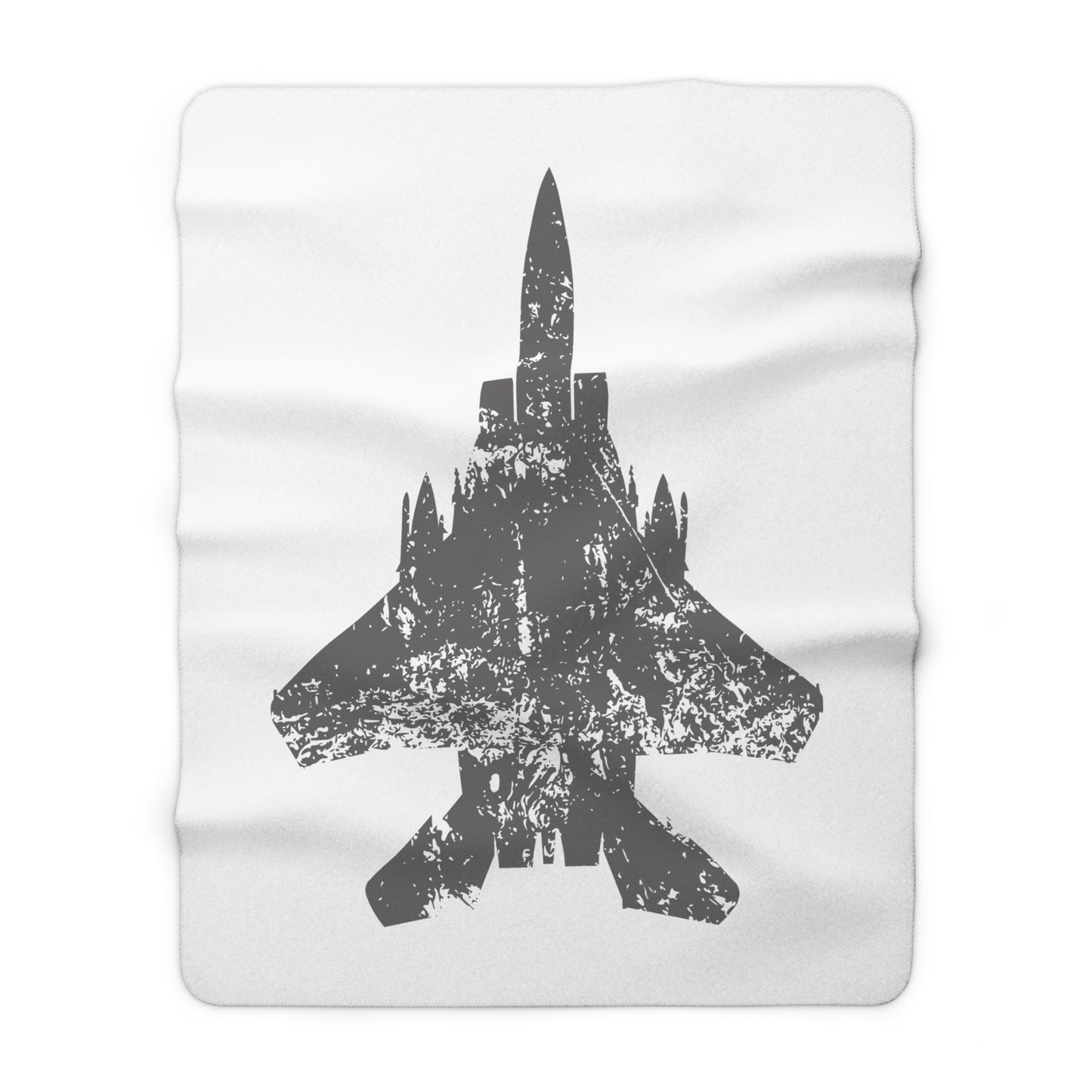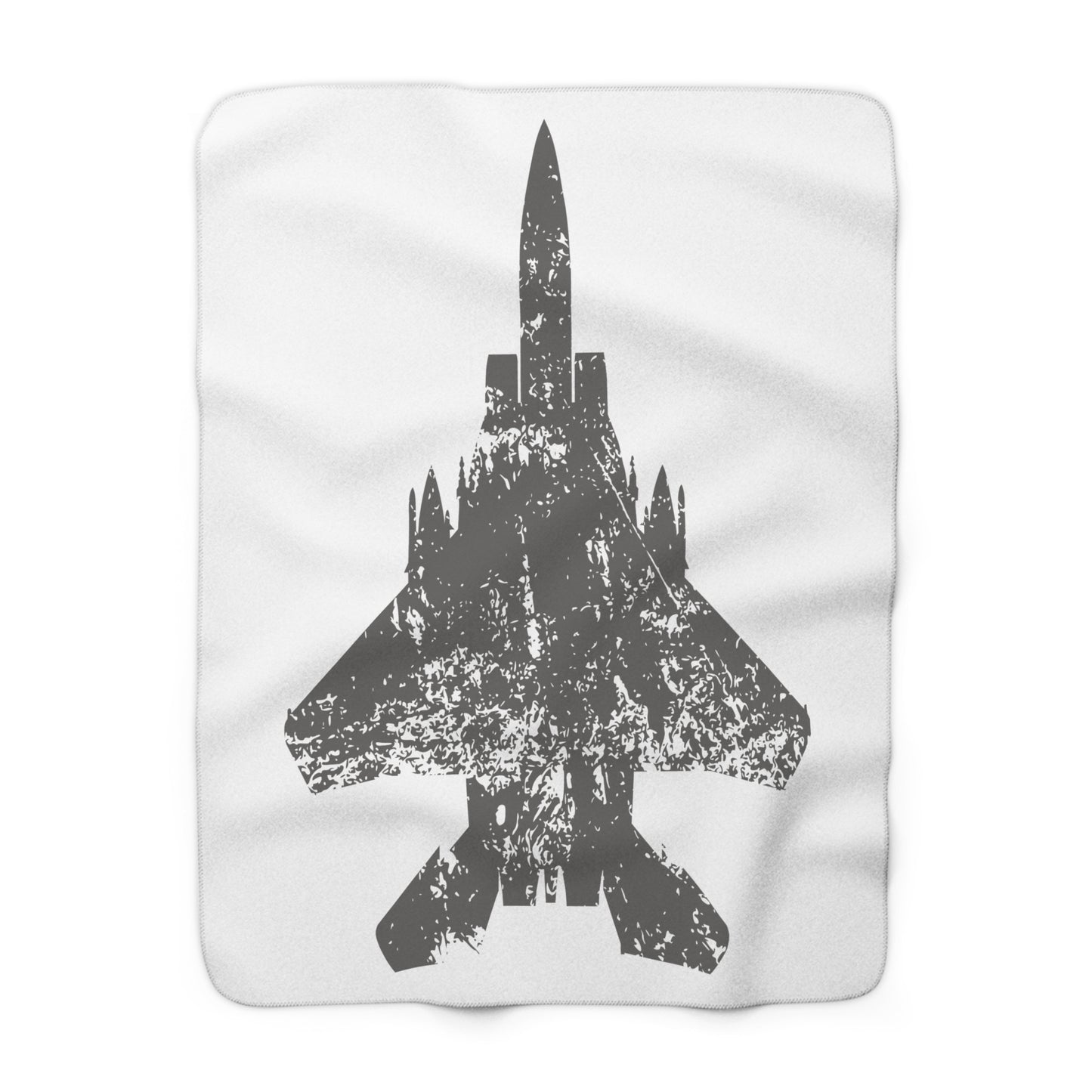 White Sherpa Blanket with F-15E Silhouette Graphic